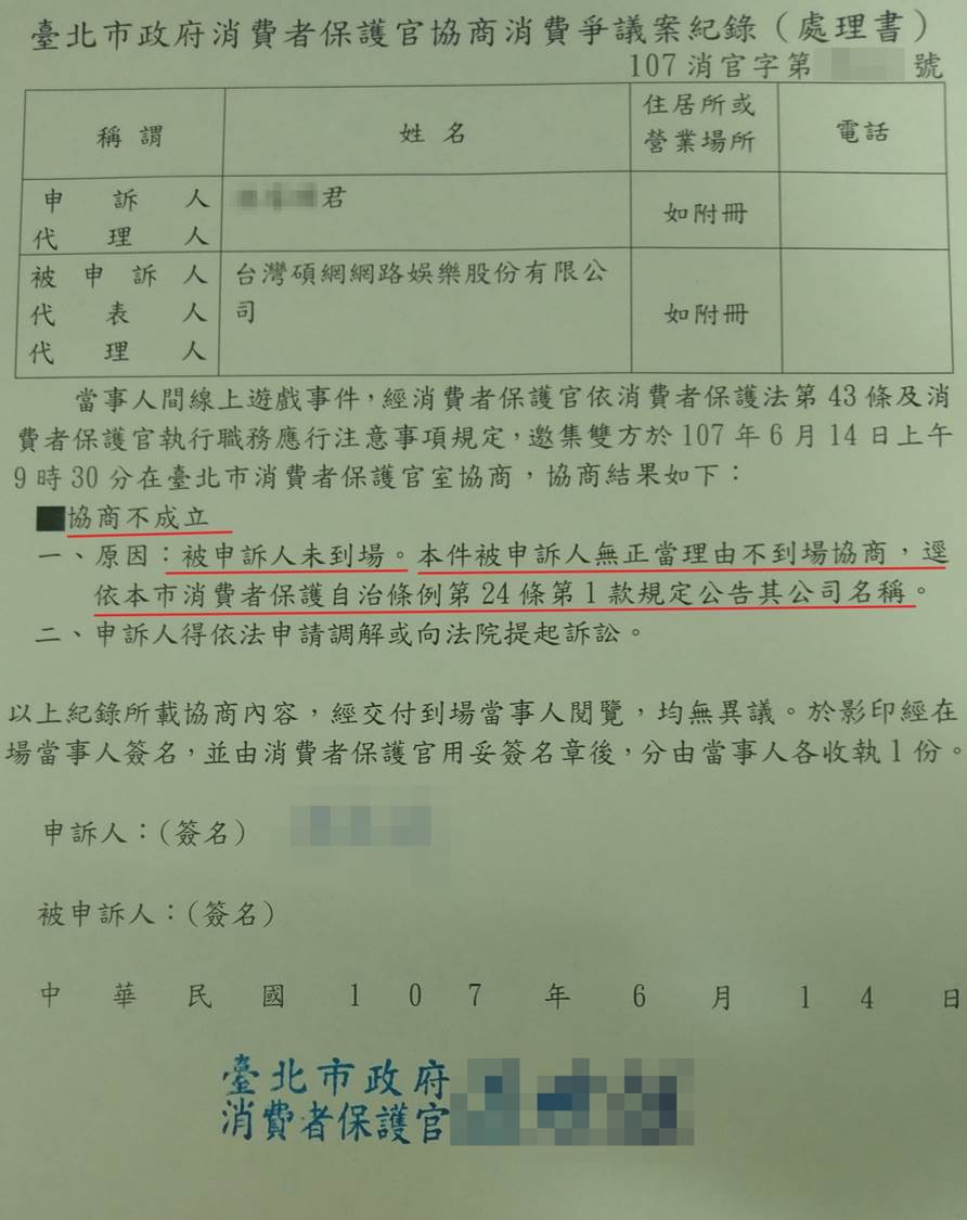 → blueoldfox: 如果沒有,你的"申訴"憑什麼要求廠商要出席回應... 06/16 20:28