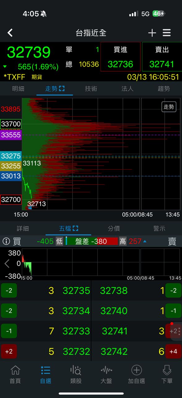 → munichuihsin: 大奇蹟日,還好沒聽信空蛙大台@多單33512停損在32400 03/13 10:14