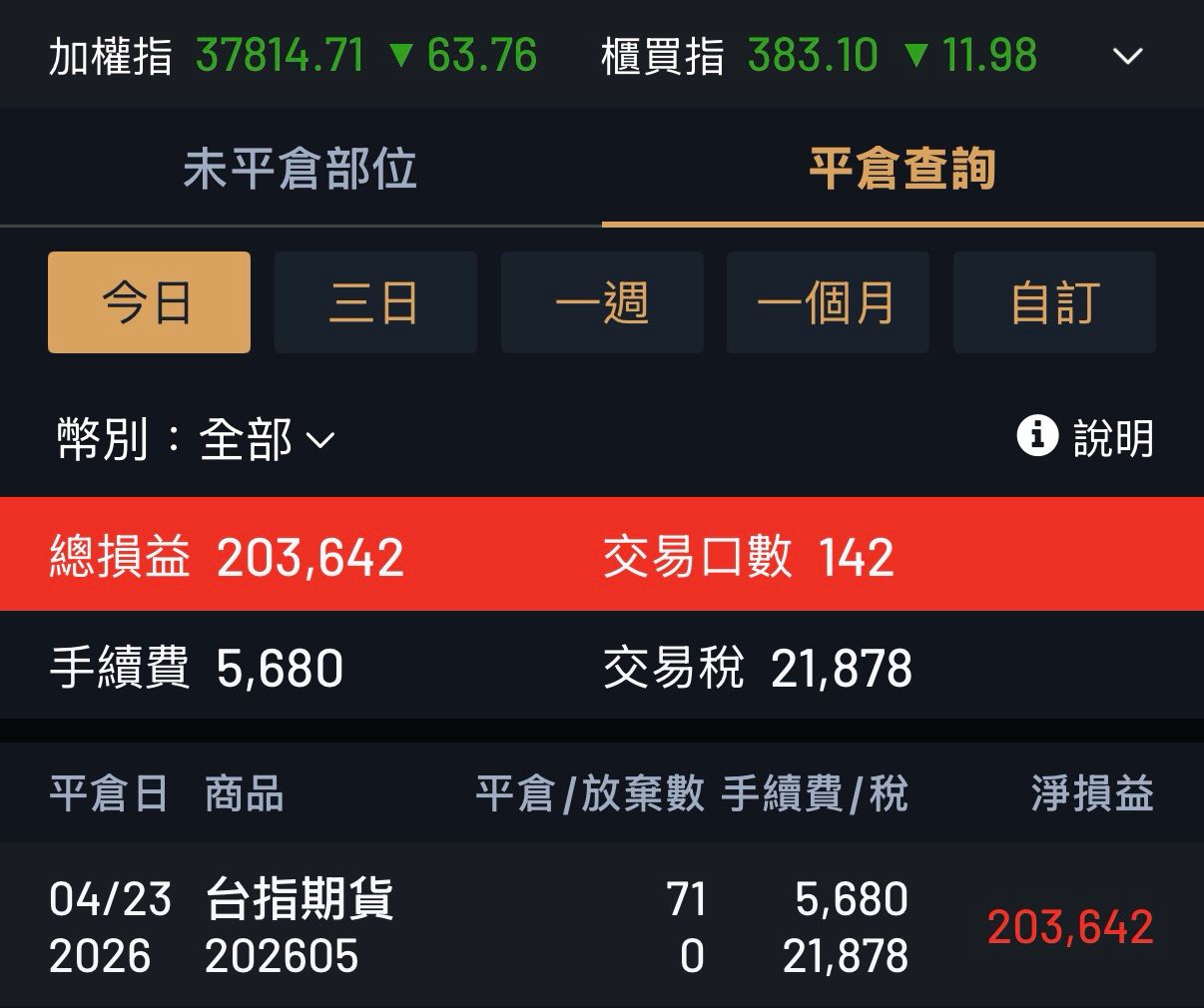 → ARMANI9527: 今天這麼刺激 可惜我只敢SC38900價差單 週五應該穩收 04/23 11:15