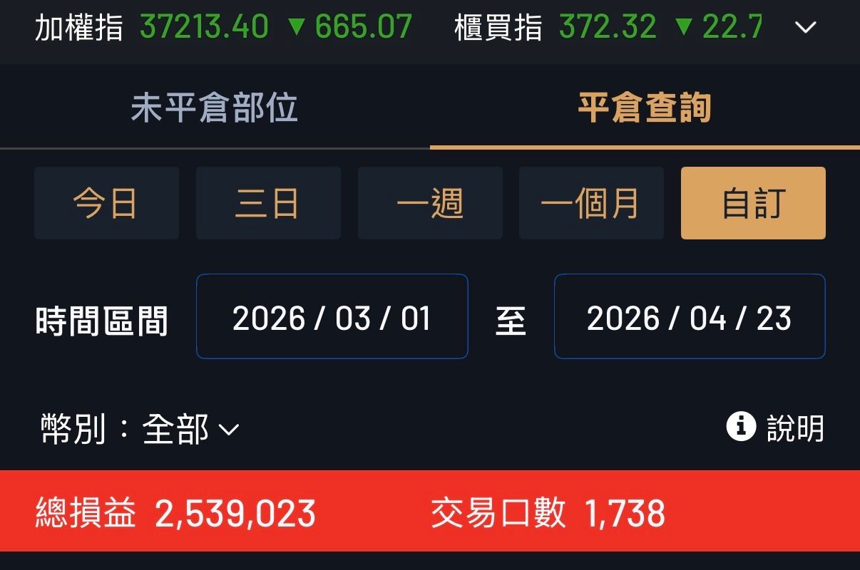 推 wwf1310: 昨天下午15:00~到現在…獲利200k..雖然大的沒撈到~知足了 04/23 10:23