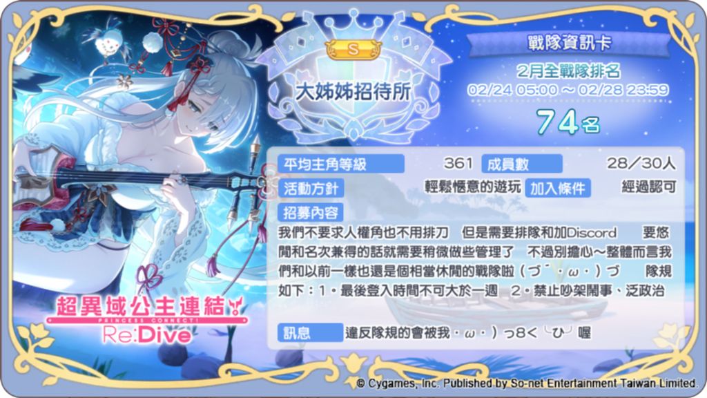 ※ 使用者應詳閱本文內所有資訊後,再決定是否加入,如有必要請詢問發文者、戰隊隊