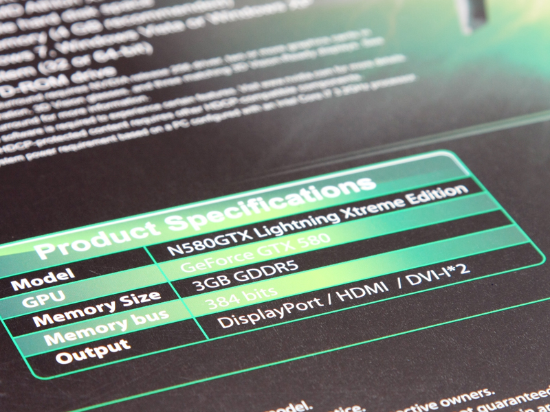 GTX 580 LIGHTING EXTREME EDITION提供使用者高達3GB的超大容量記憶體, 看起來相當