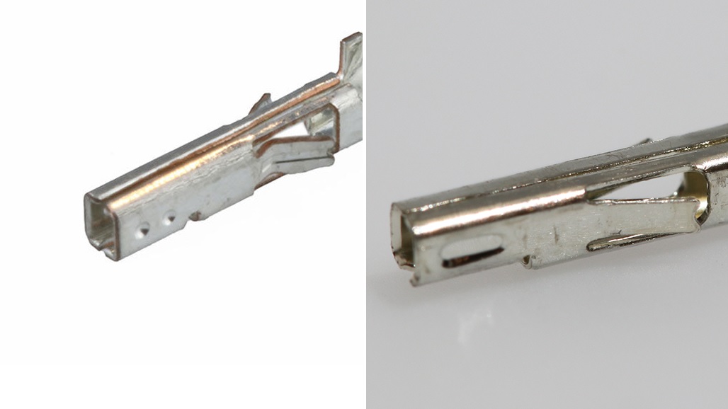 HCS版把端子互碰觸的形狀從左右兩個凹點變成一整段的凹槽