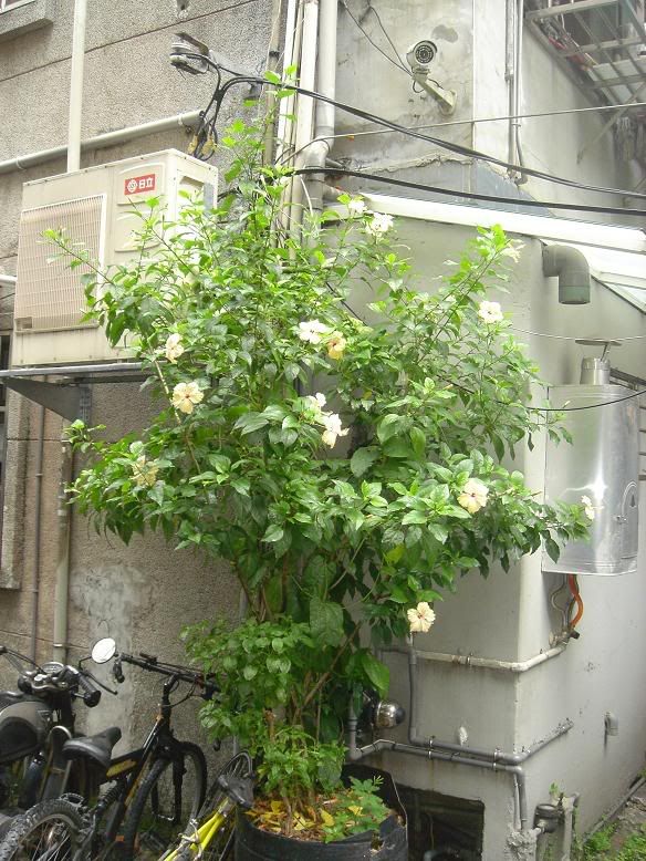 3.種細雨扶桑的超大花盆 表面的枝葉是上禮拜修剪時剛堆放在土表的