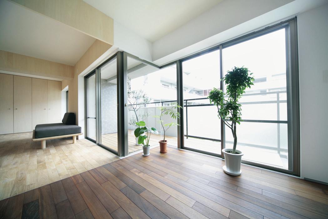 在日本的室內設計作品中常看到客廳會放一大盆綠葉植物
