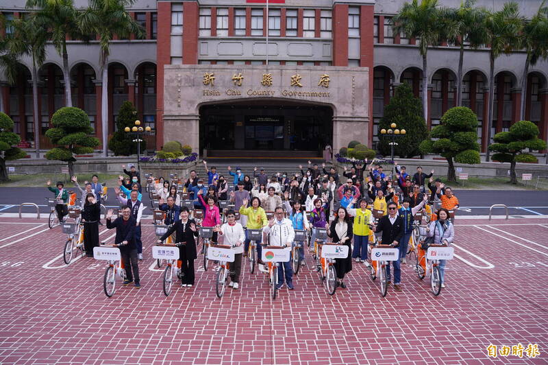 新竹縣政府今天舉辦「公共自行車企業聯合捐贈記者會」,一同見證全縣公共自行車規模