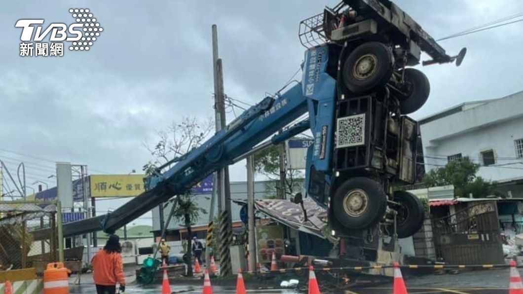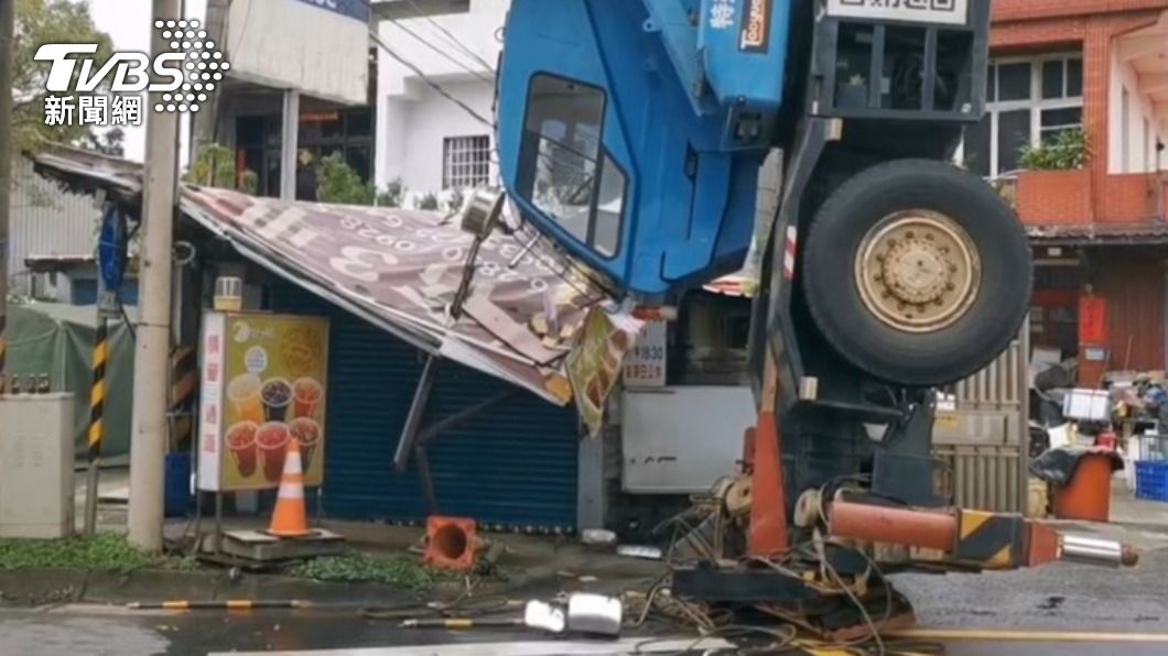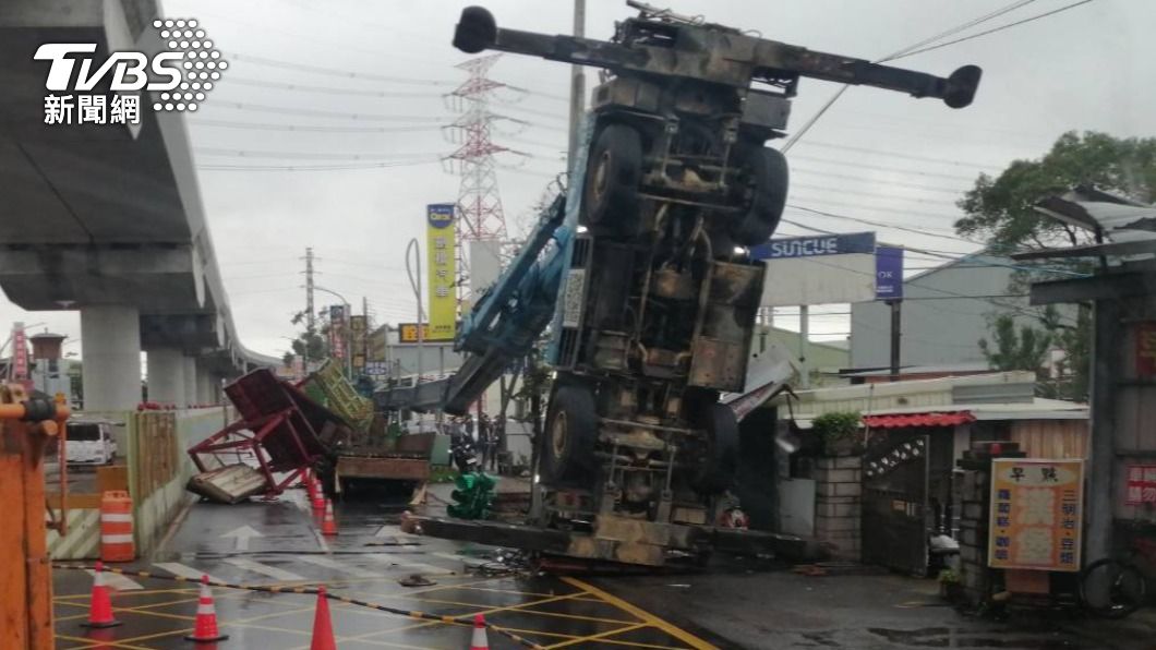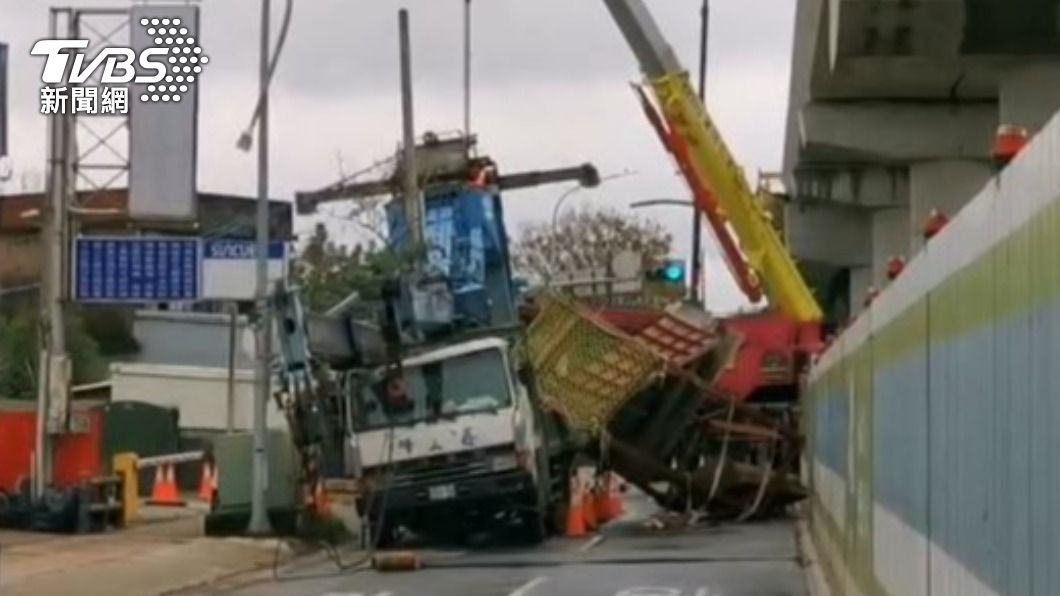 監視器拍下吊車翻覆瞬間。(圖/TVBS)