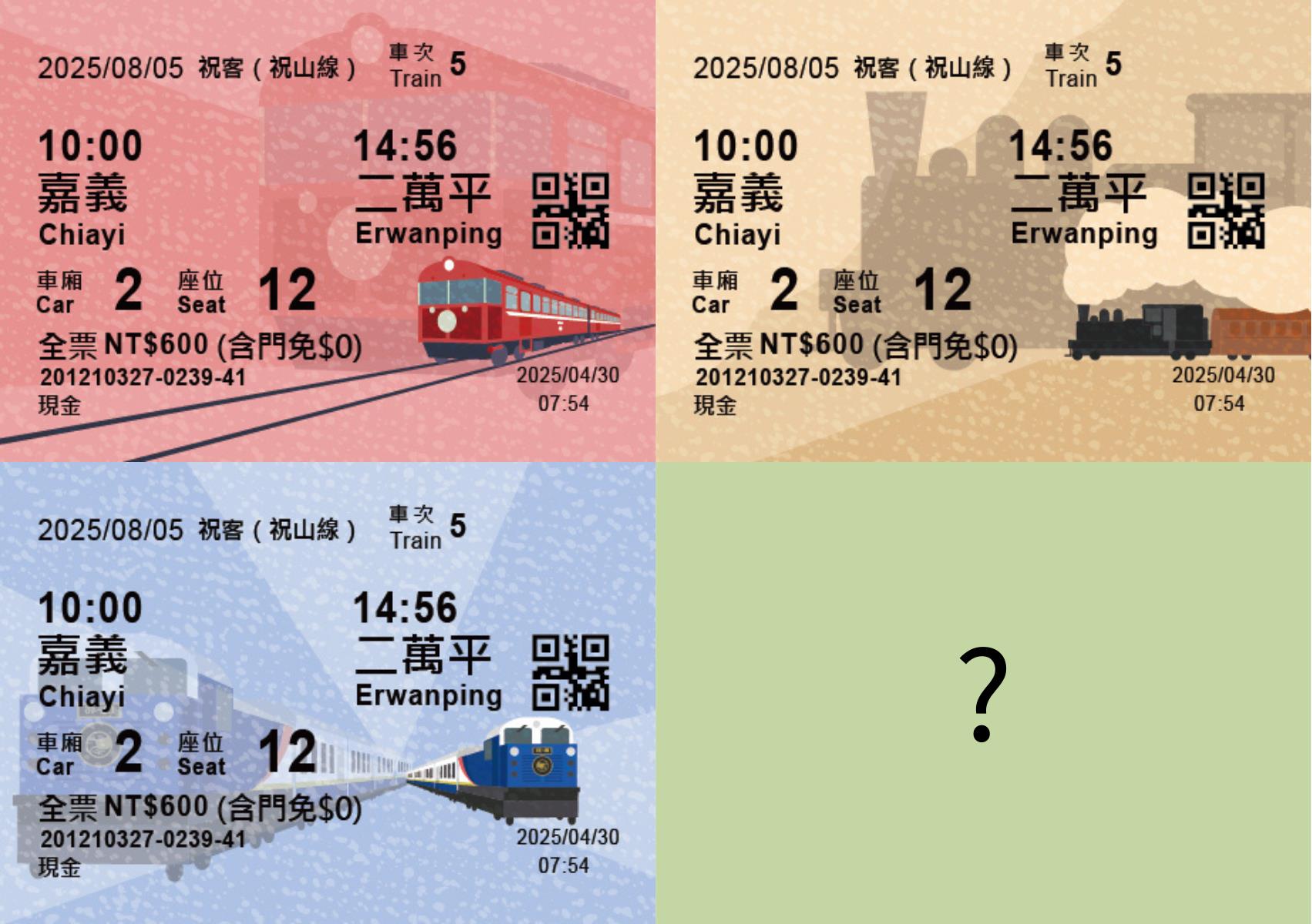 為Shay蒸汽火車、中興號、栩悅號及隱藏款,邀請旅客試手氣收藏限定款車票。