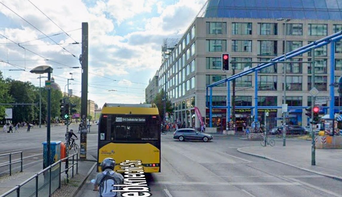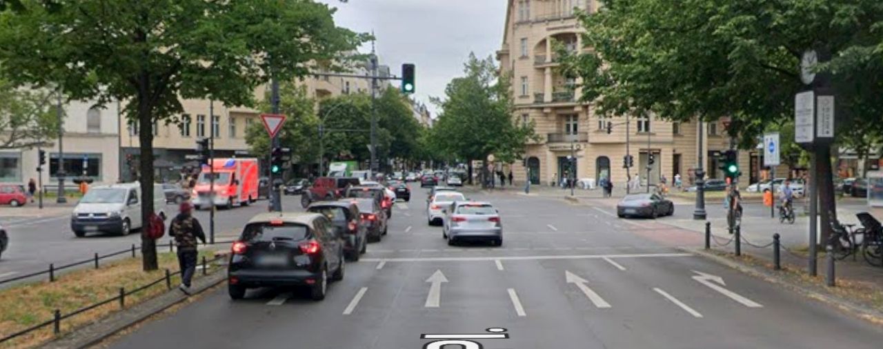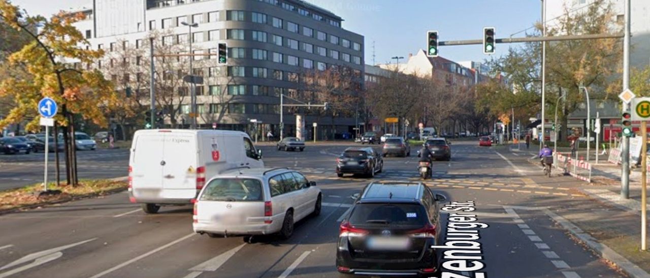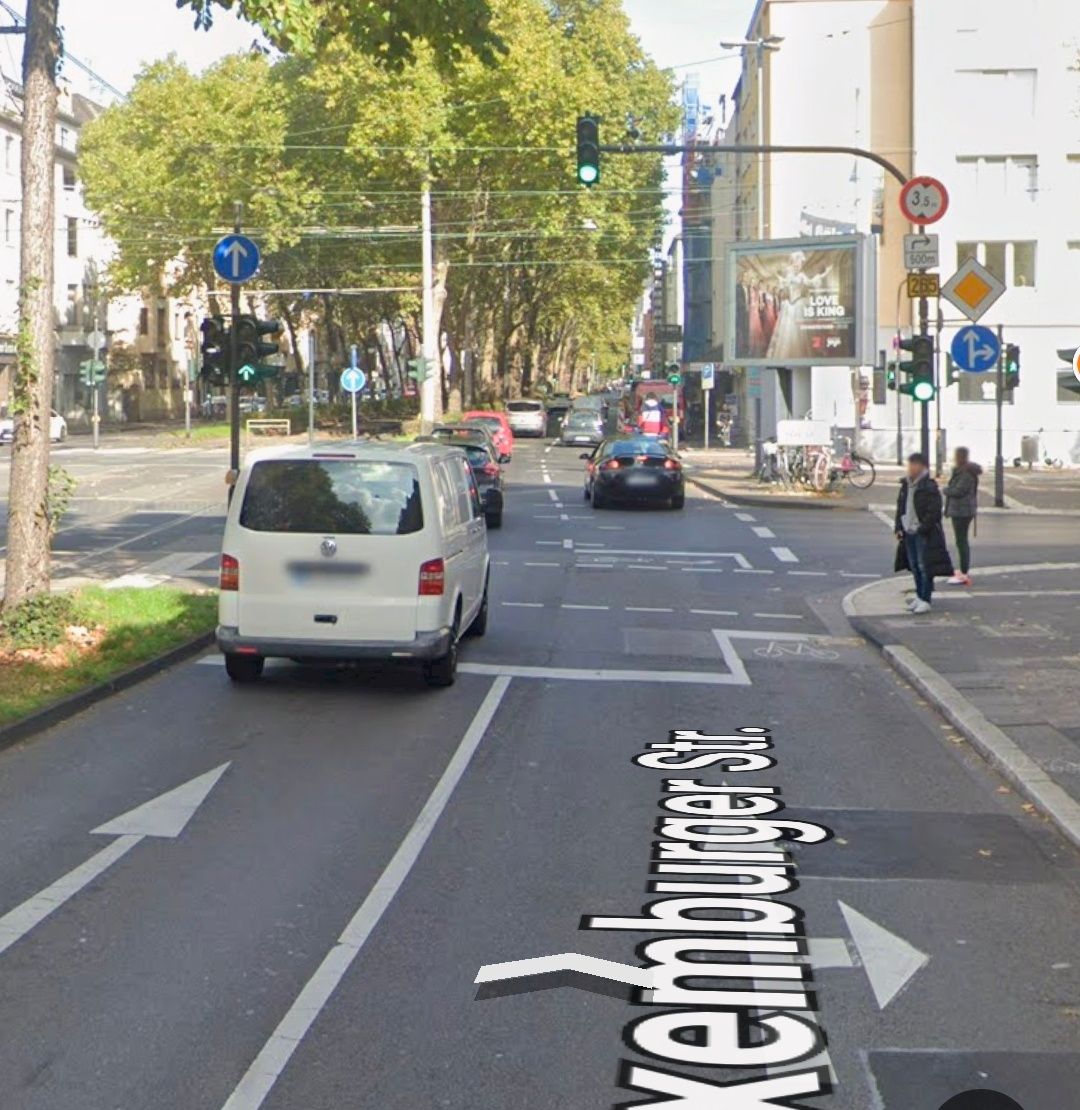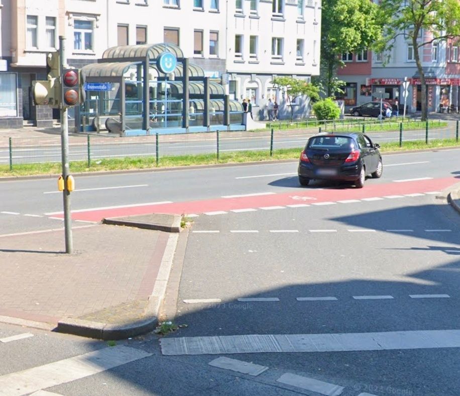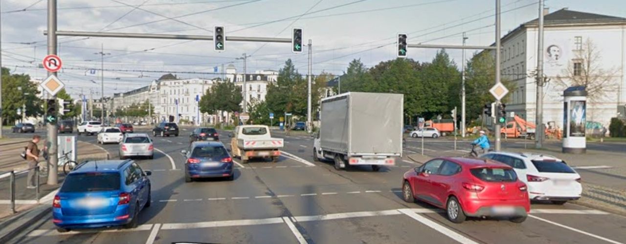 德國也會善用雙排的號誌去調控特殊路口的車流,如這個緊鄰平交道的十字路口: