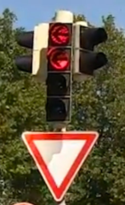 原西德的州有時可見,如機動車輛或自行車號誌會多裝設一個紅燈、行人號誌多一個小紅