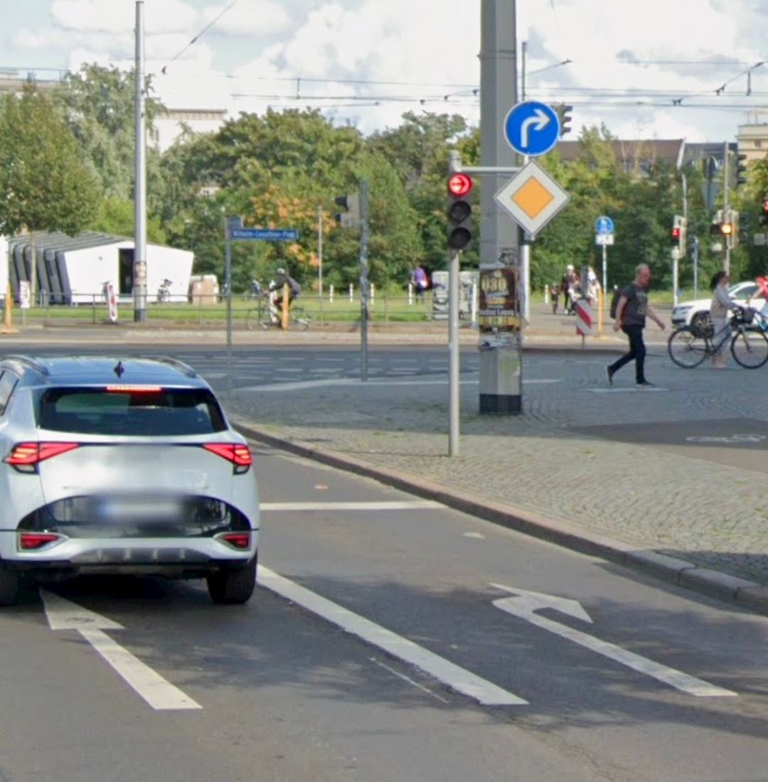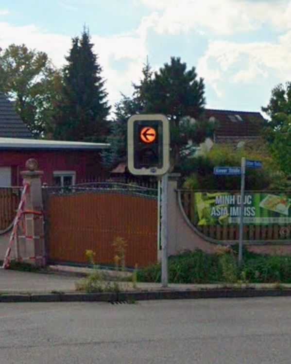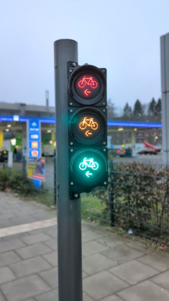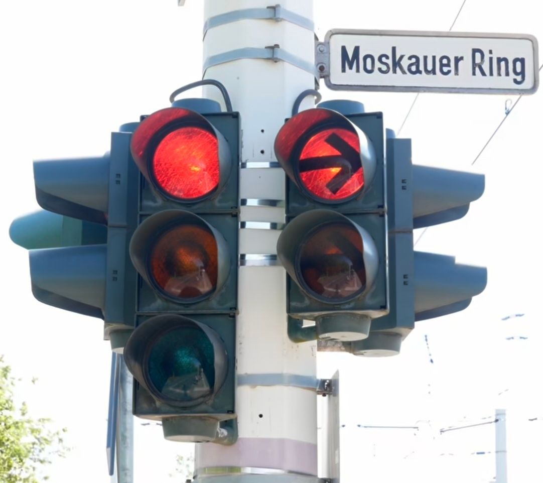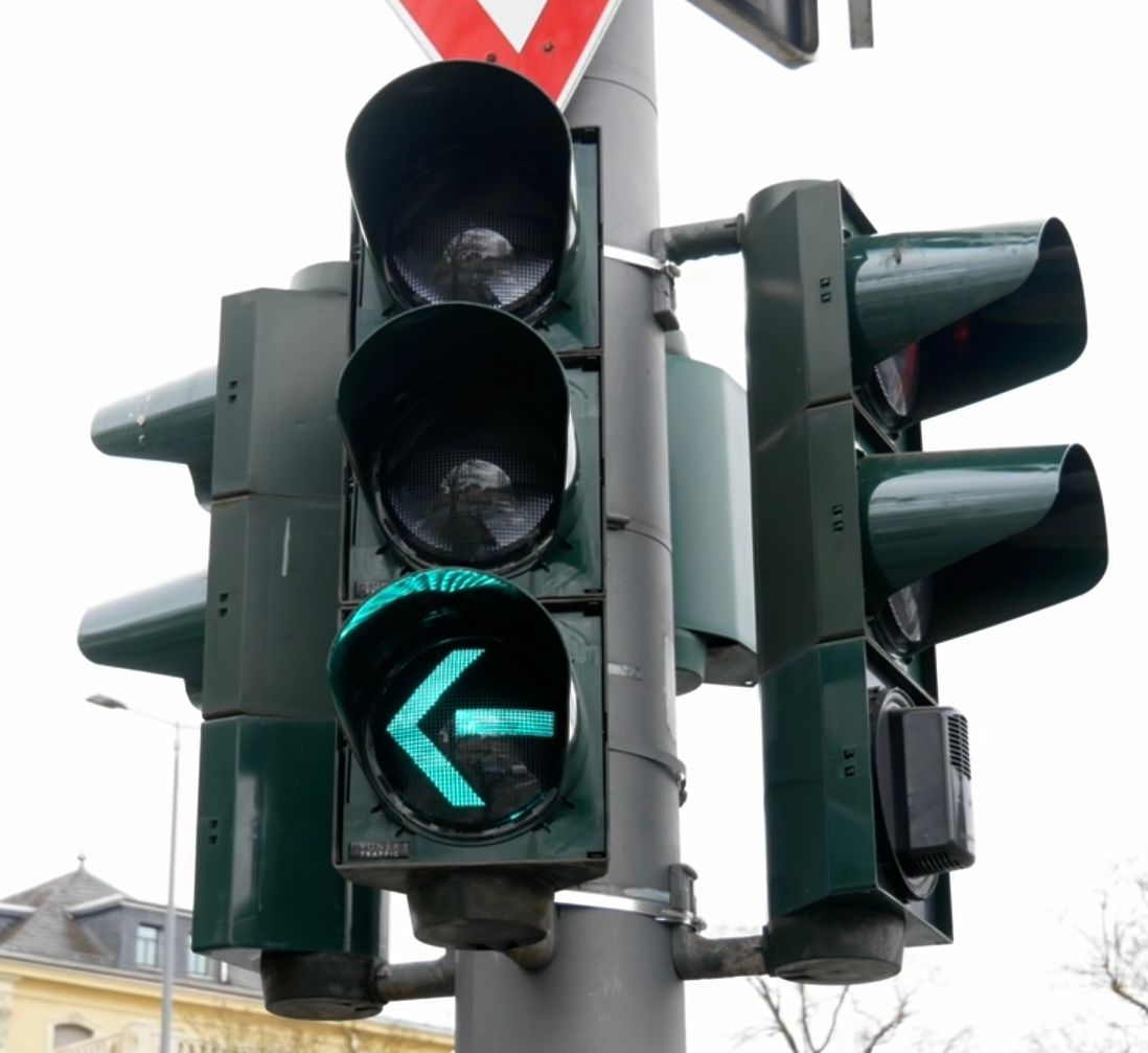 在德國,圓綠並非左轉及右轉保護,有些三色燈會在
