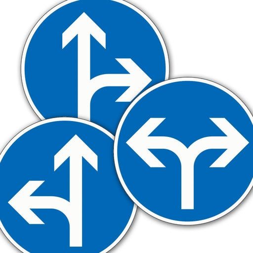 C. 藍底圓形白箭頭:遵行方向,該方向以外的方向都禁止(日韓也是採用同系統)