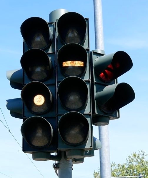 最特別的是,德國常將號誌設計成單獨的綠燈、單獨的黃燈、只有綠燈與黃燈、只有黃燈