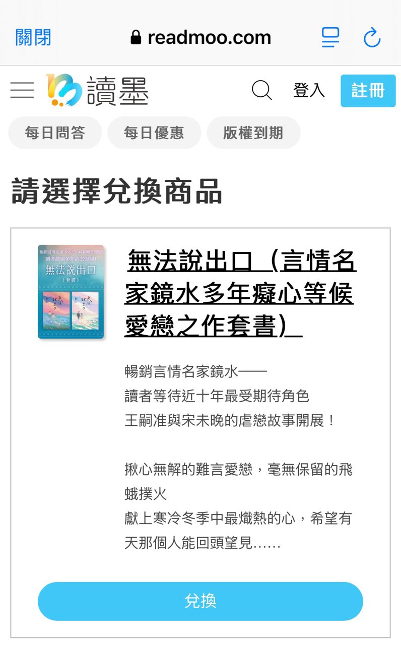 推 parisya : 鏡水新書上架讀墨了,可疊75折券,一套364元(我在 02/11 00:19