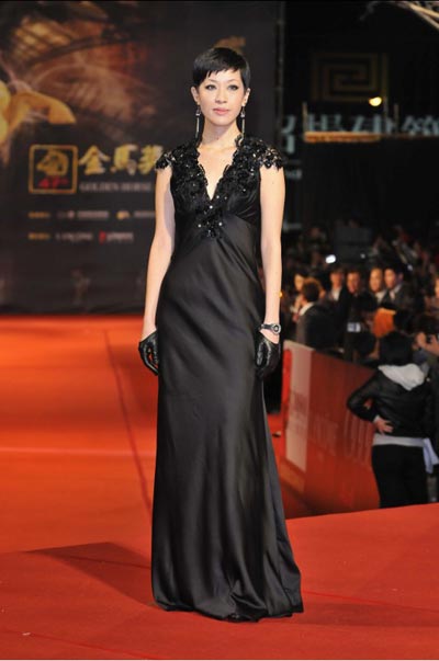 個人意見:最近這幾次頒獎典禮讓我發現陳珊妮其實很適合穿禮服,她有那個氣勢,更有那個體型,這件珠飾的黑禮服其實本身並不特別,但她搭配的皮革短手套讓整個造型有了個性,我認為很畫龍點睛。
