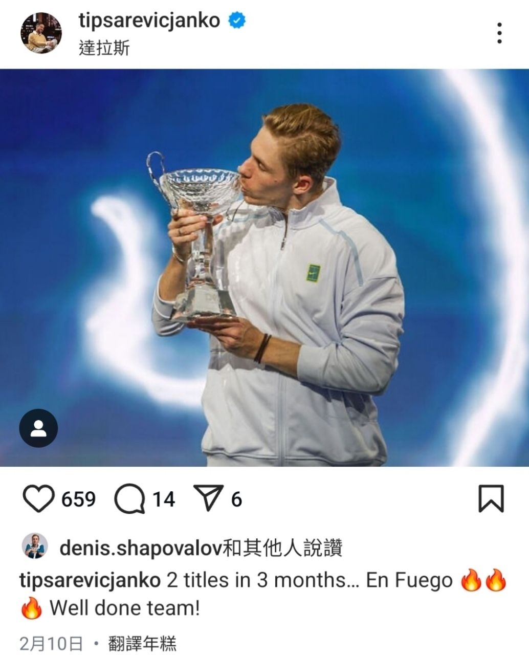 再次感謝Shapovalov在2025年帶給大家的感動,奪冠真的超讚!!
