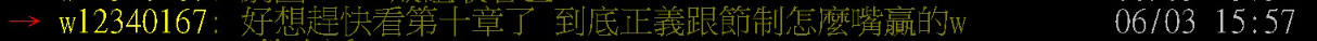 → wl2340167: 好想趕快看第十章了 到底正義跟節制怎麼嘴贏的w 06/03 15:57