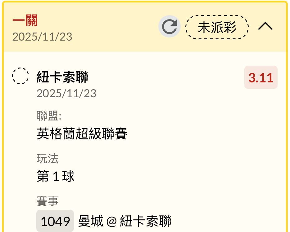 推 alexhsu0909: 紐卡1.5大3.1來一張 223.138.86.76 11/23 01:57