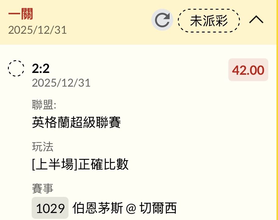 → er520230: 我已經收工了 串這場3.5大 1.75 跟狼 122.100.84.220 12/31 05:15
