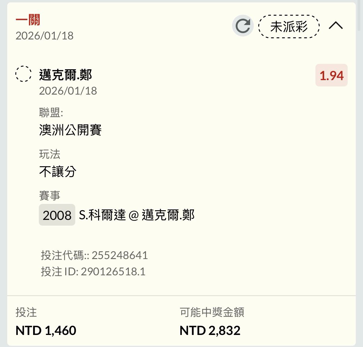 推 chukenren: 賠2萬賽前柯達1.2 場中壓小鄭4萬凹回 1.161.33.39 01/18 16:33