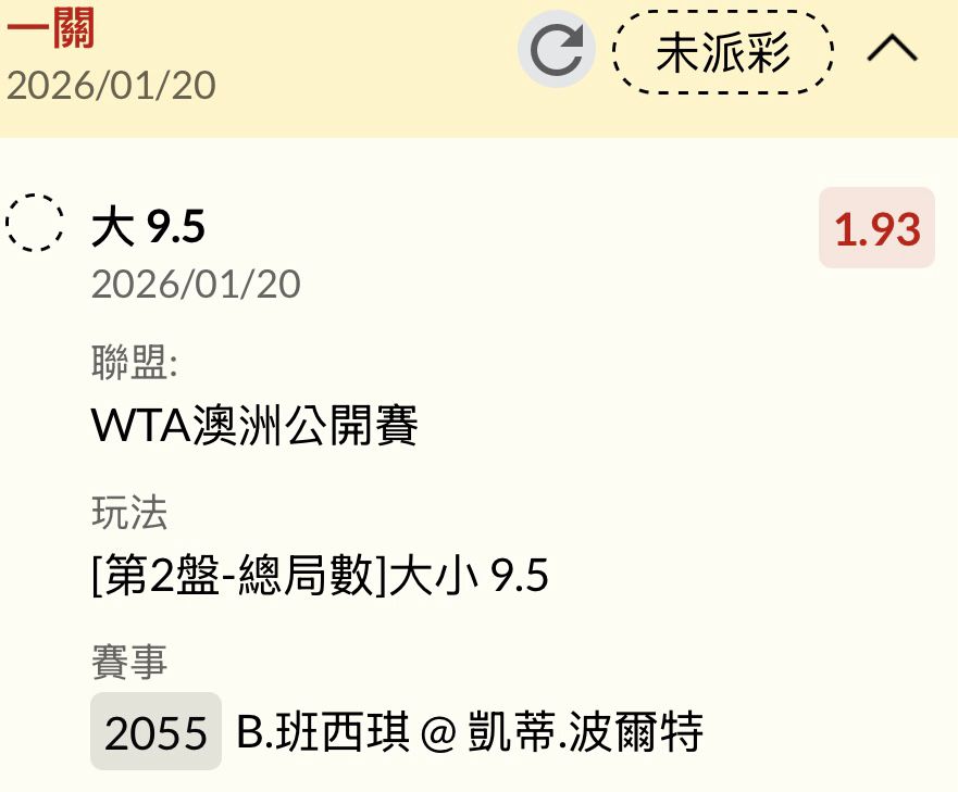 → leehom010727: 賽前1.08不給我押 42.73.121.4 01/20 17:41