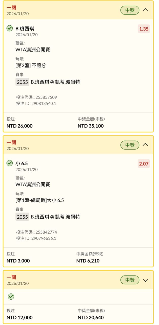 推 melman87: 馬後炮一下 男單常常6:0接6:7 女單也能 27.51.26.88 01/20 17:31