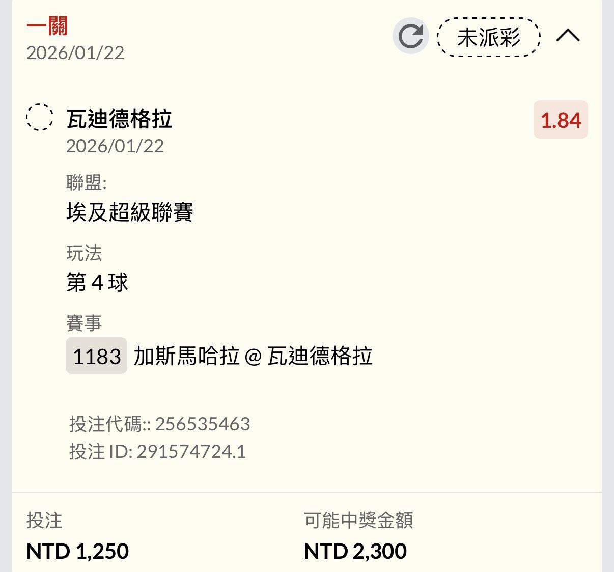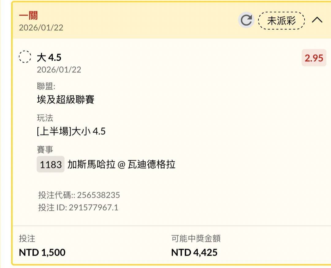 → fred0755: 開賽有買到13倍 111.81.57.120 01/22 23:26