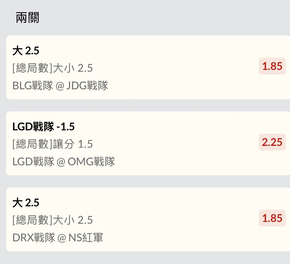 BLG@JDG推薦2.5大(1.85)(X)