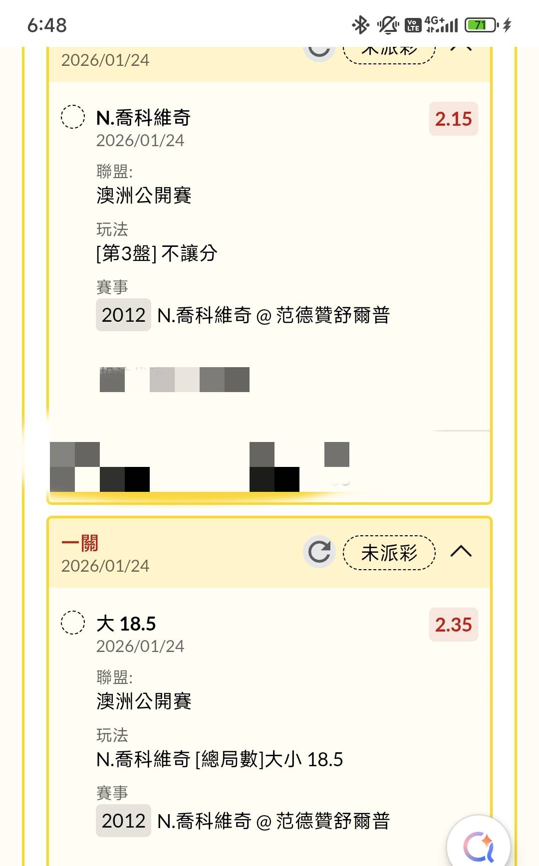 推 StrKO: 又被破 喬科讓一下好嗎 多打一盤練練手感 114.137.17.227 01/24 17:03
