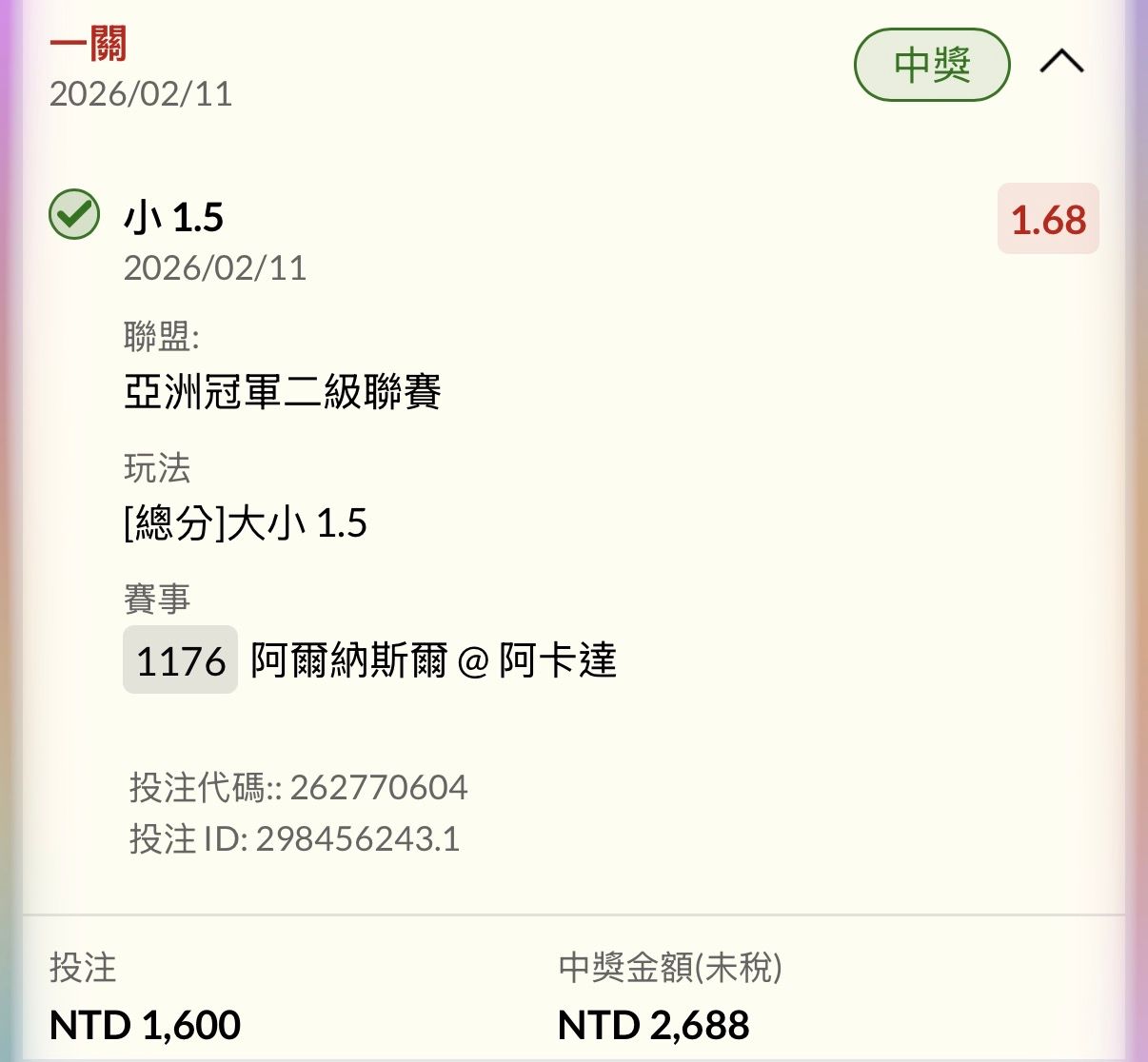 推 momofan: 進球買2.5小 收 謝謝粗 223.140.73.21 02/11 23:42
