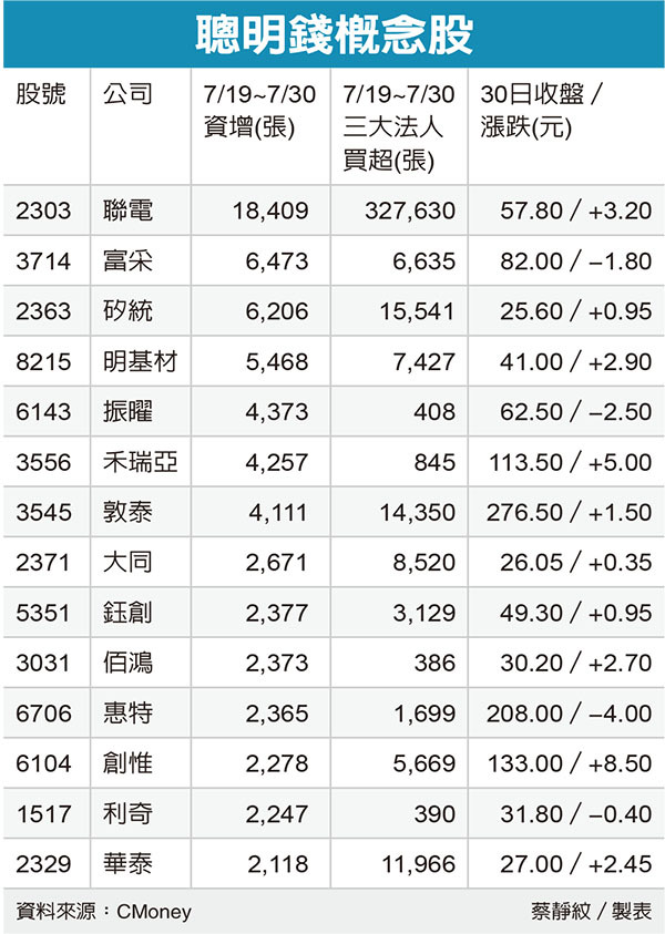 經濟日報報導「聰明錢」布局聯電(2303)、富采、矽統、明基材等個股,