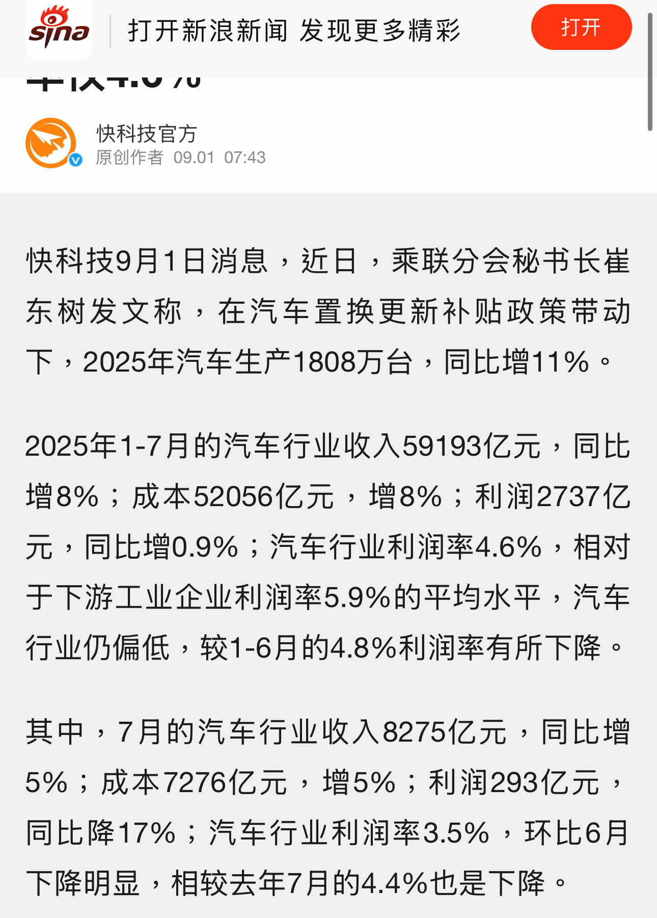 乘聯分會近期數據,7月份中國汽車行業利潤293億元,同比
