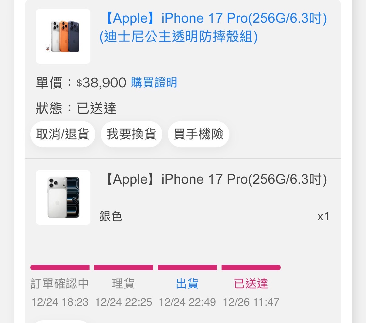 然後也買了iPhone17pro犒賞一下老婆