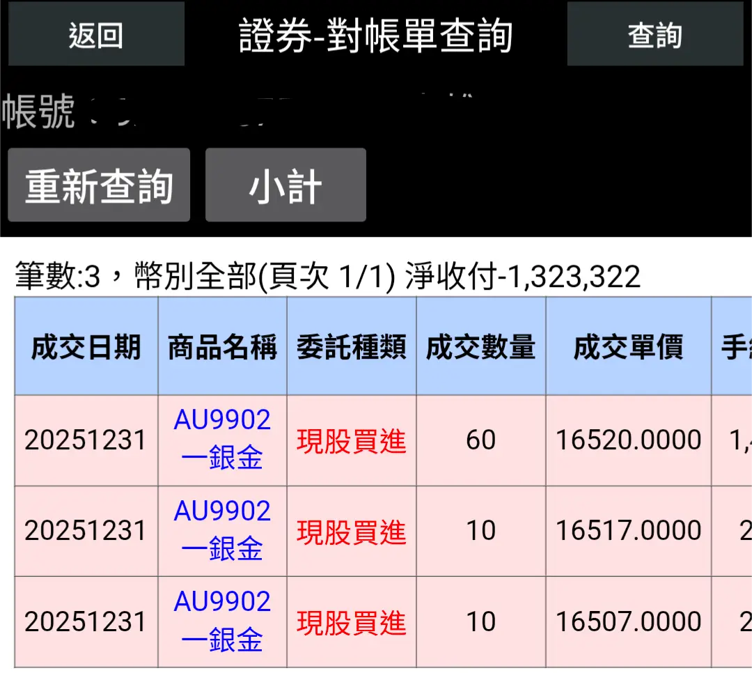 → offstage : 我買完ETF後31號又買了8兩一銀金,成本1,323,322 01/23 10:54
