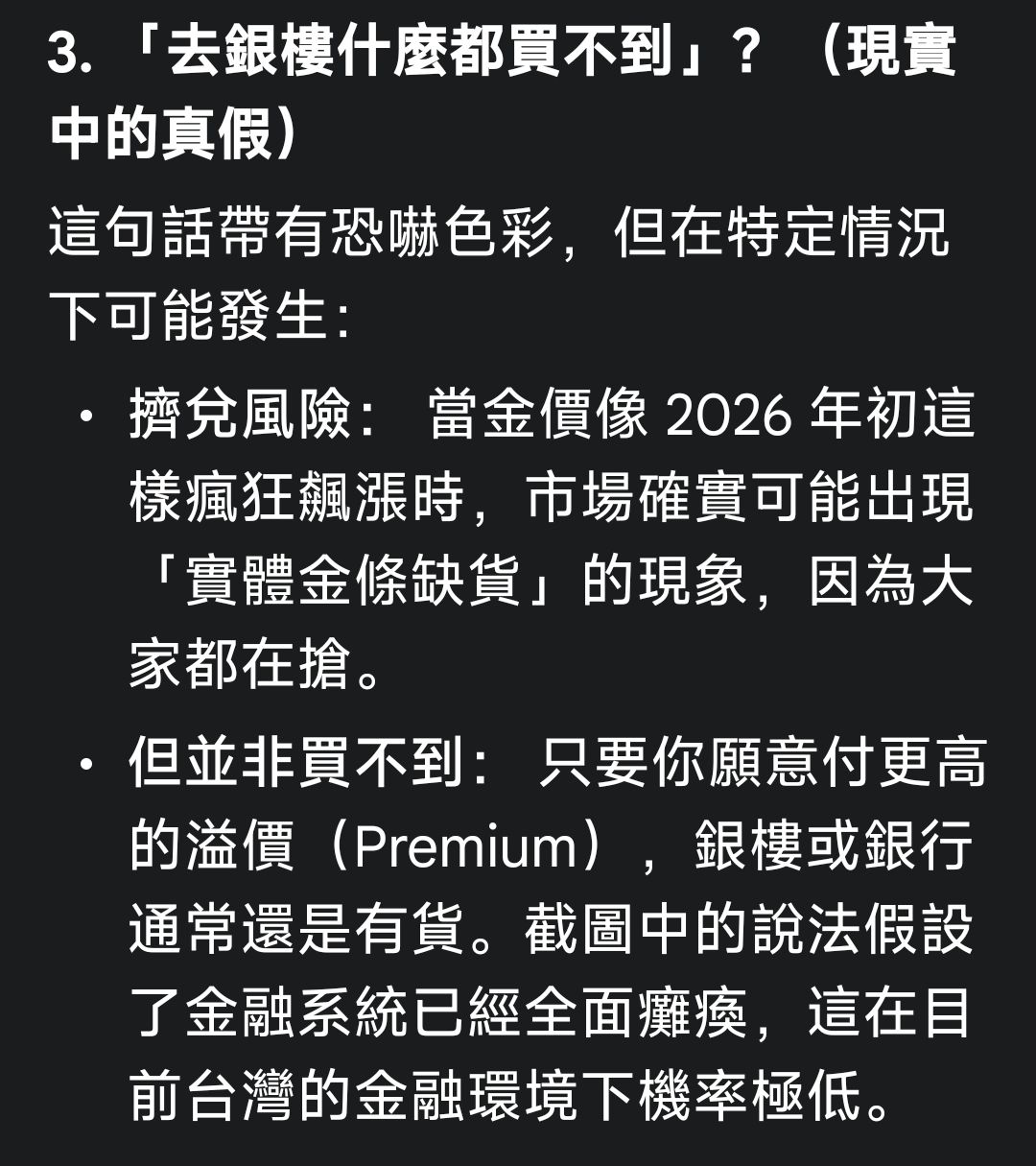 → buttery : 實體黃金方便逃難啊,可以第一時間買了機票或是船票 01/23 11:01