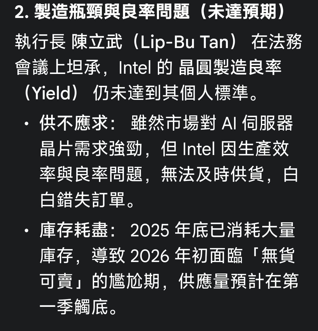 噓 fajita : 英特爾下跌是因為庫存,產線調配,良率等因素,跟記 01/24 09:03