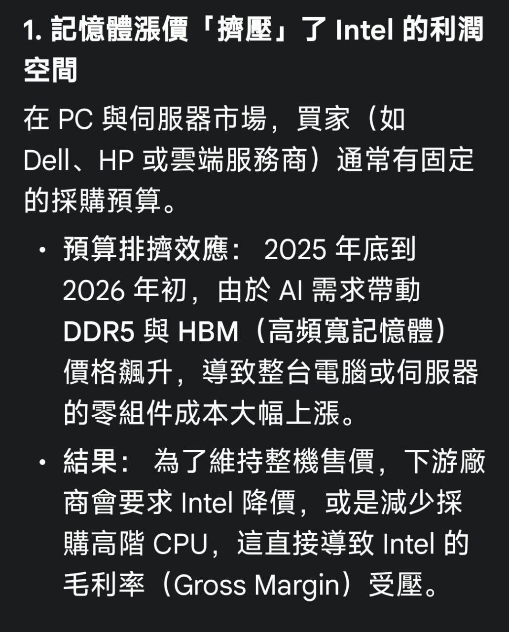 推 buffetta : Intel代表的就是消費電子,早晚會反噬到漲價族群, 01/24 08:31