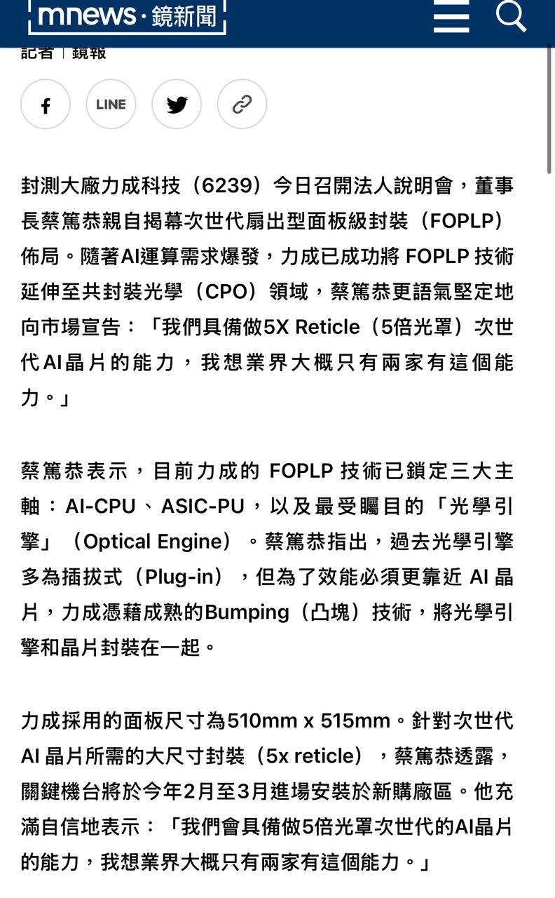 推 PTIMIKE : 5倍光罩只有兩家會做,結果HBM做不出來停止開發 01/27 19:19