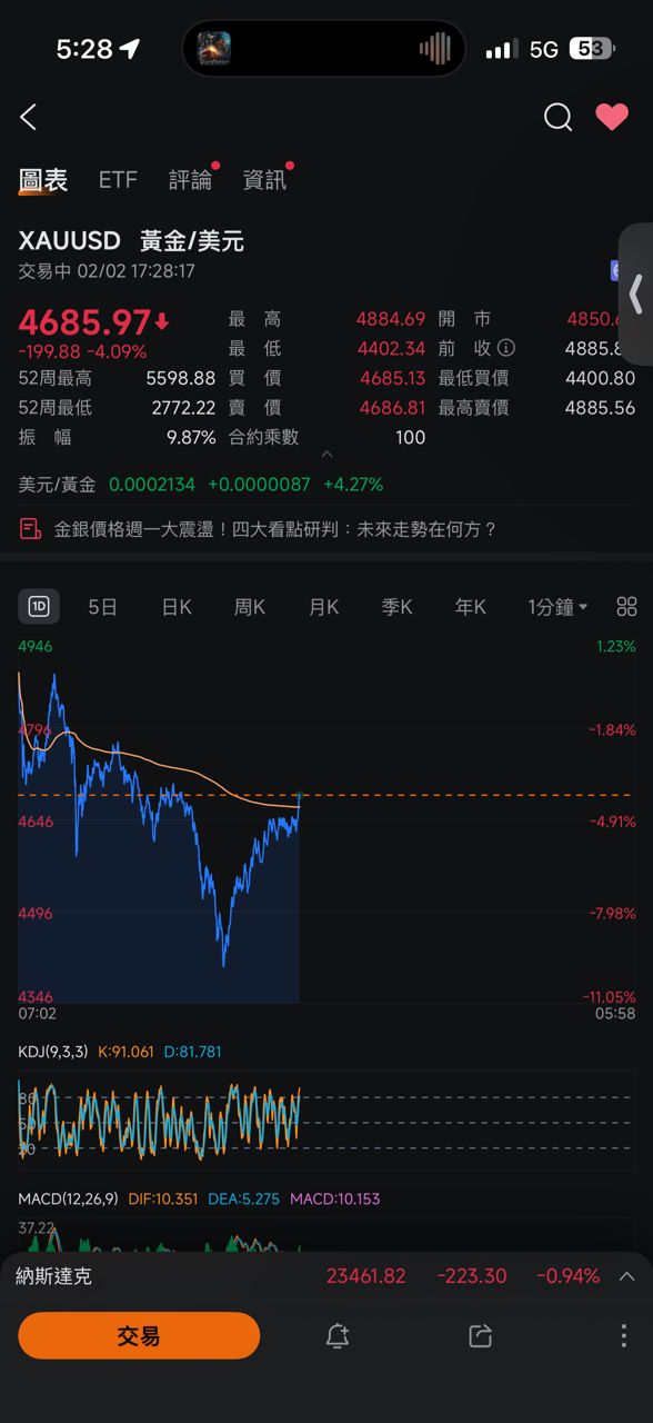 推 myforce : 黃金還在蹦 真的要出大事了 02/02 14:05