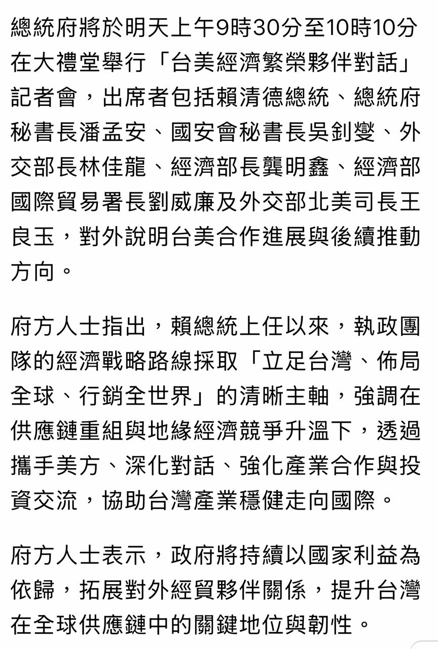 推 luke0407123 : 明天9:30會開會啦 公布台美合作進展+推動方向! 02/02 19:04