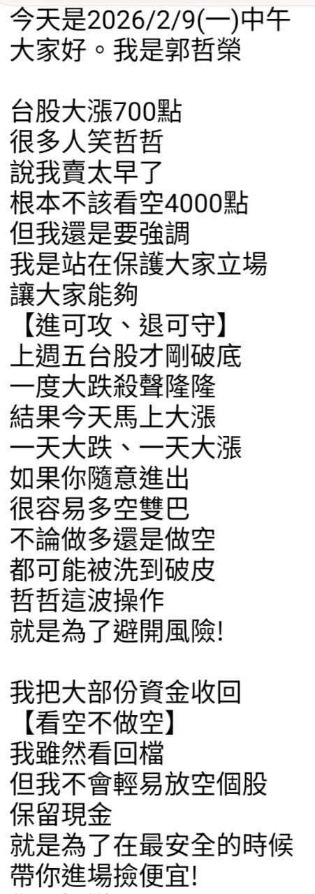 → Sweet83921 : 這個位階 40年股市老手也沒遇過 完全是新世界 02/09 08:33