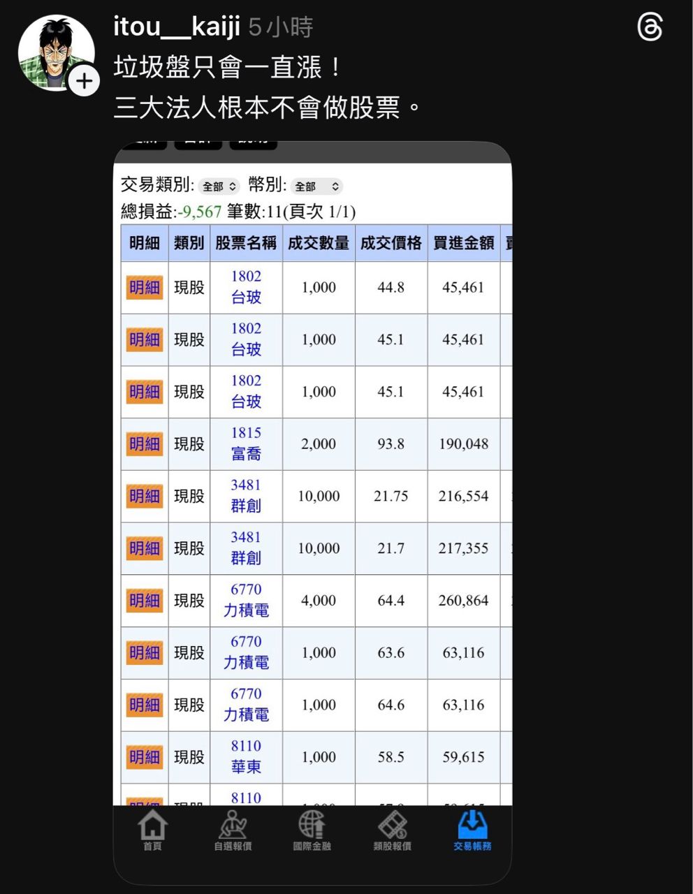推 fujioqq : 夜盤還有啊 不嫌慢 02/11 14:08