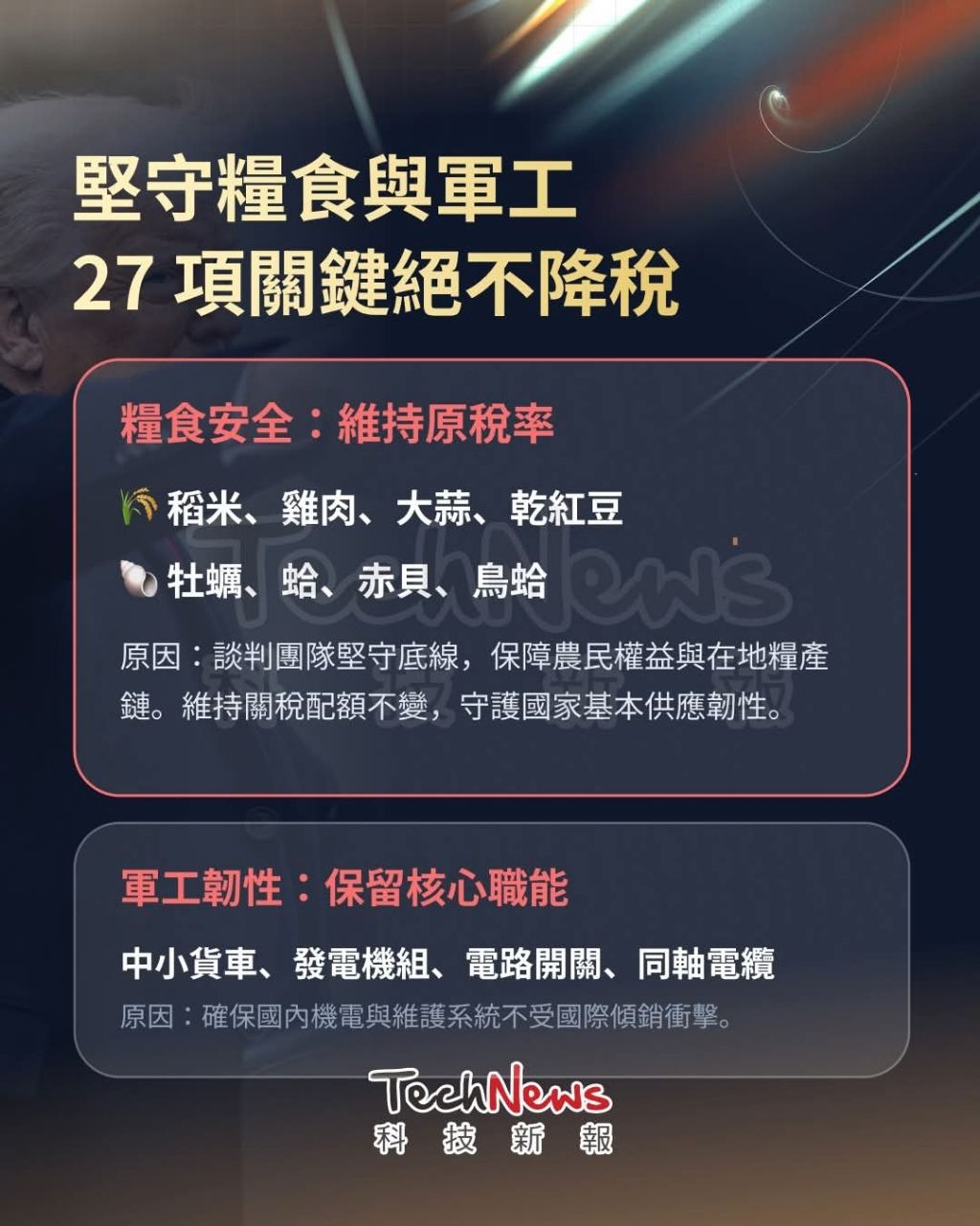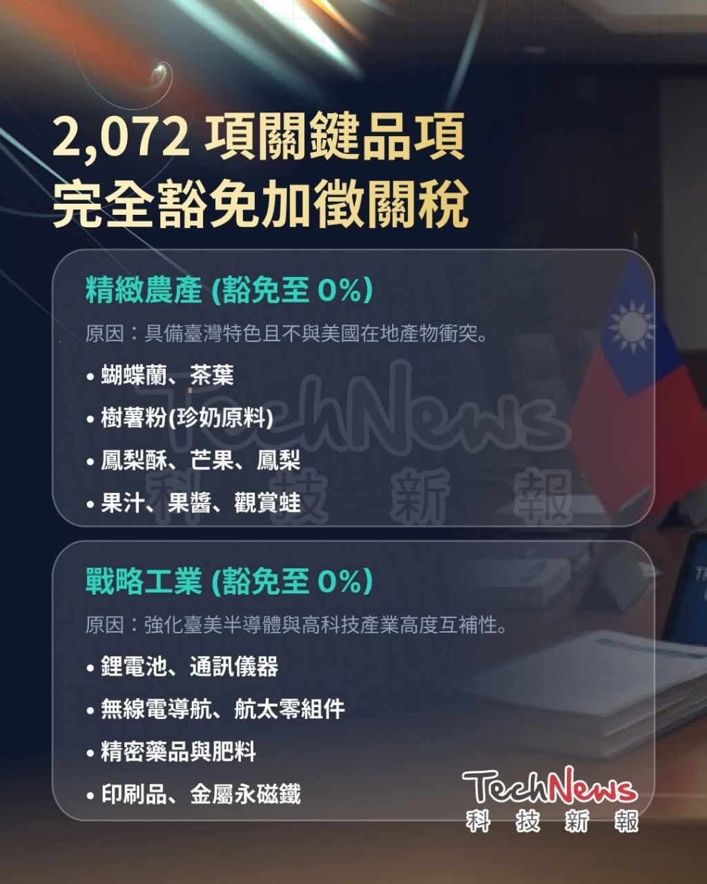 811項獲得對等關稅豁免,包括重機電、航空器零組件、藥品等,這些本是台灣強項,預