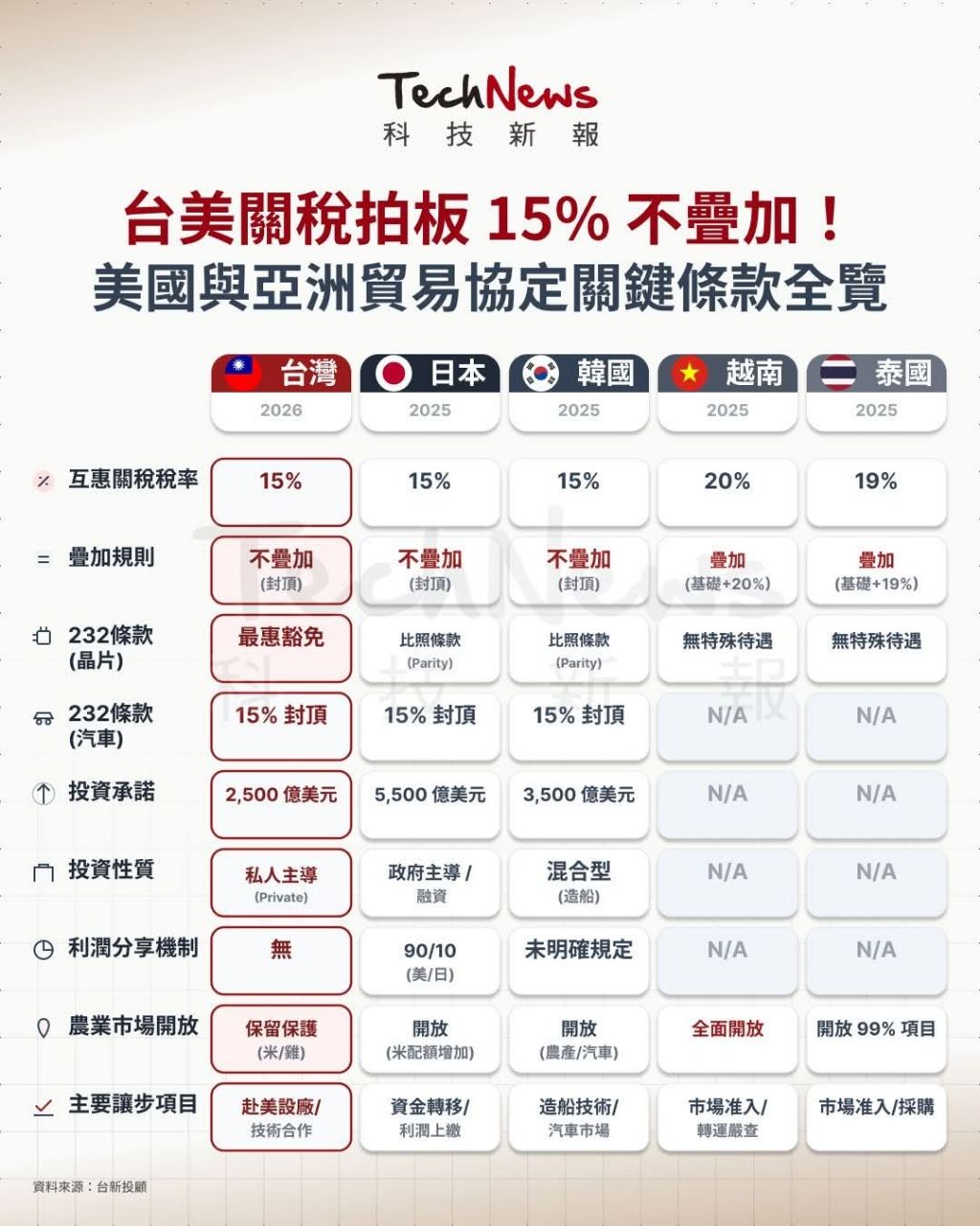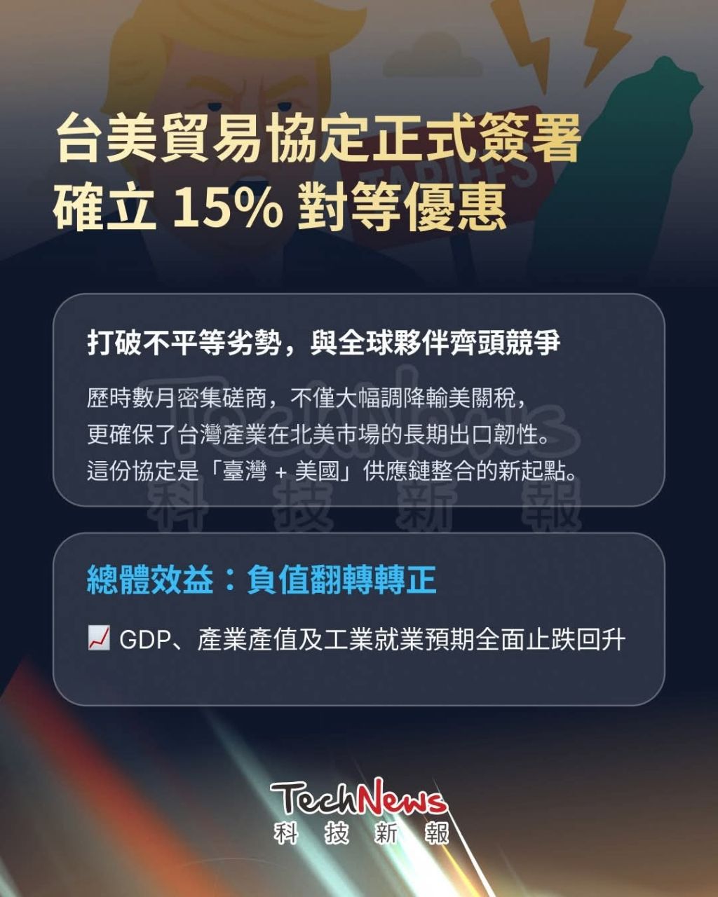 關稅部分,僅占整體工業產品15.2%,也就是課徵15%且不疊加。