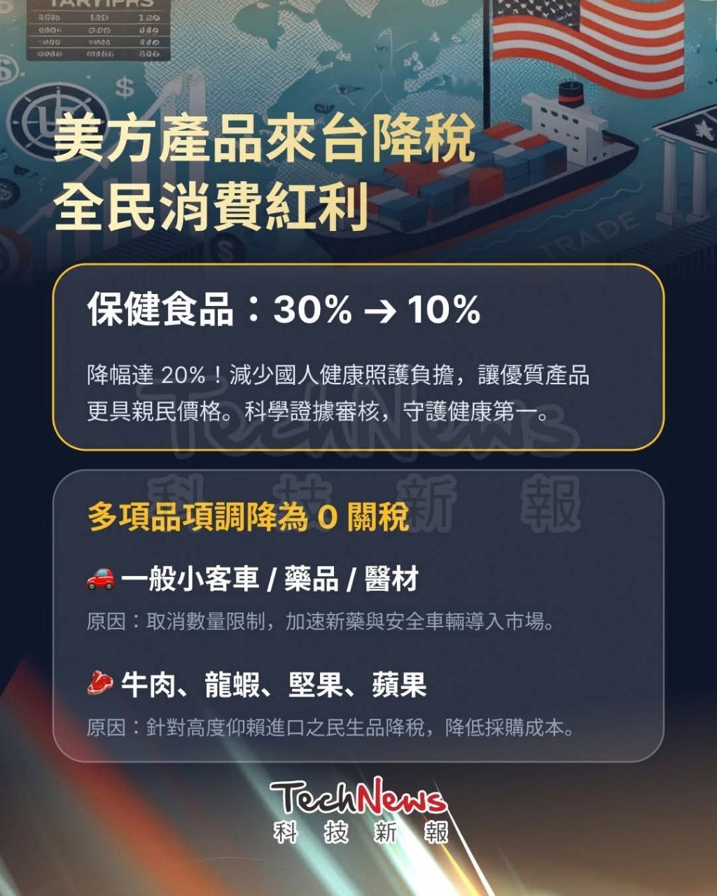 美進口降為零關稅的64.4億美元,算是還蠻好的結果。