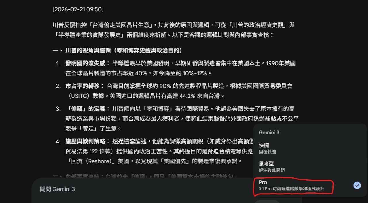 推 poisonB : 你這明顯不是3.1 Pro 下去吧 02/21 10:04