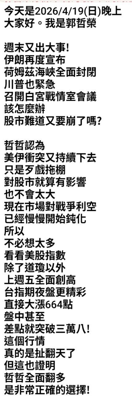 噓 beta0907 : 今天美股開盤就翻紅了 完全不用擔心 04/20 08:28