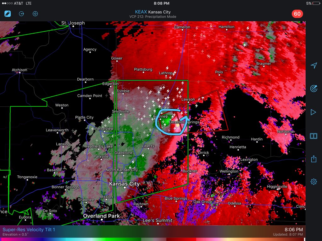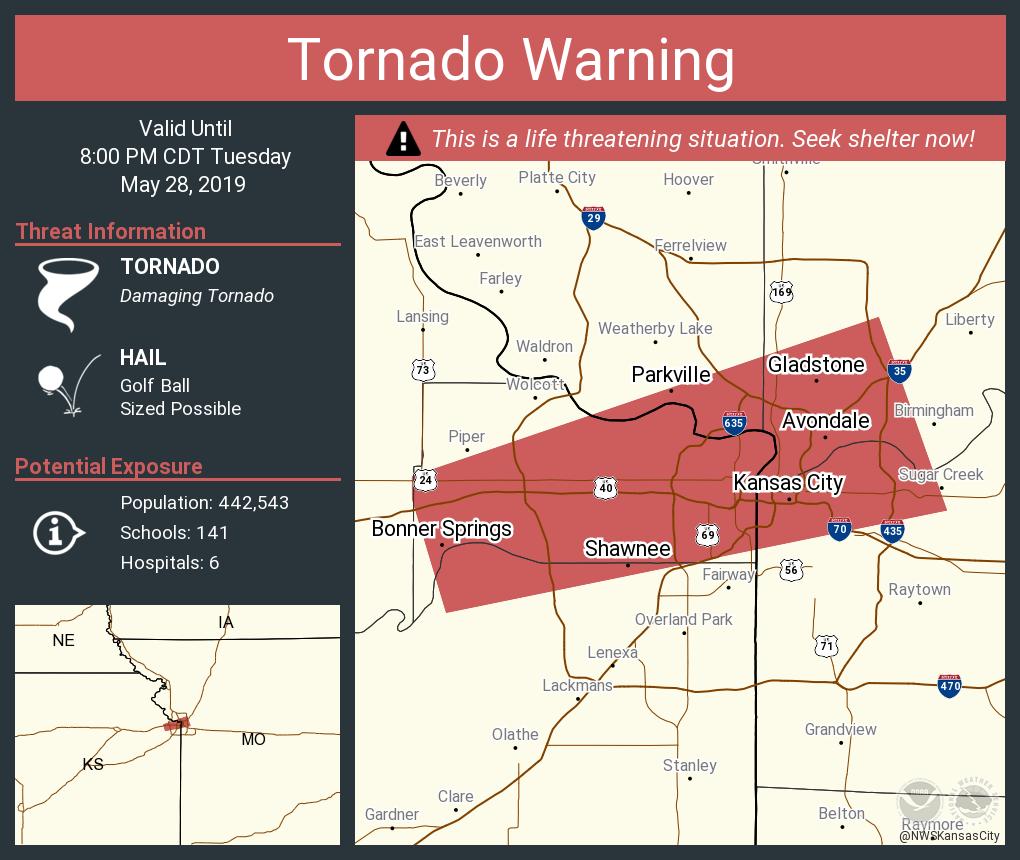 數十分鐘前看推特有堪薩斯市發布龍捲風緊急警報