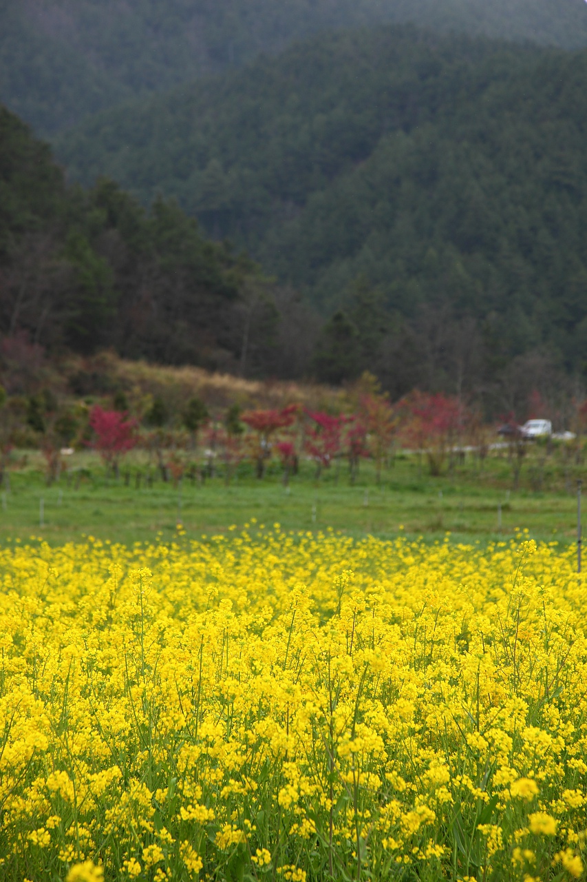 黃澄澄的油菜花給人與櫻花截然不同的美感,僅及腰的高度比起櫻花似乎更容易親近,