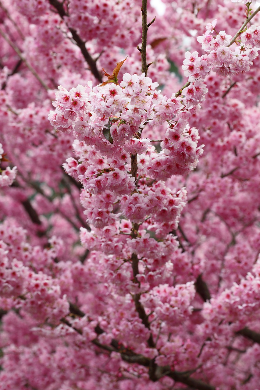 這櫻花叫紅粉佳人,是台灣山櫻花(緋寒櫻)和昭和櫻兩種櫻花台日混血下的品種,